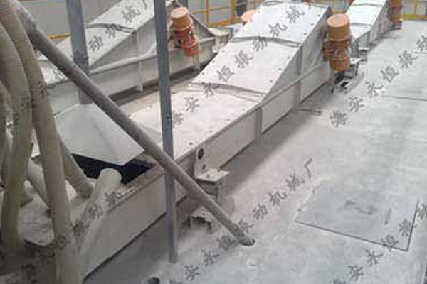 DZSF系列直線振動篩是由篩箱、篩框、振動電機、減振系統及座架等組成。直線振動篩是用振動電機作為振動源,固定在篩箱上兩臺相同的振動電機做相反方向自同步旋轉,振動電機所帶的偏心塊在旋轉時各個瞬間位置所產生的離心力之分力沿拋擲方向作往復運動